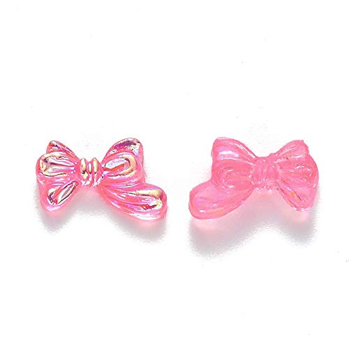 Perline 3D per nail art: 50 mini perline in resina con fiocco, con fiocco, in resina, circa 7 mm, 11 mm di larghezza, 3 mm di spessore.