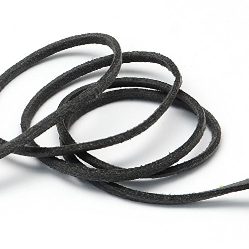 Beadthoven - Cordoncino piatto in finta pelle scamosciata, lunghezza 3 mm, per perline in pizzo con rocchetto per gioielli fai da te e collane, colore: grigio scuro