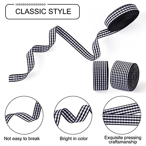 Beadthoven, Nastro in poliestere a quadretti, 50 m, colore: nero, tessuto con motivo scozzese, sottile, per lavori fai da te, fiocchi per capelli, ghirlande, confezioni regalo, 0,6-3,8 cm