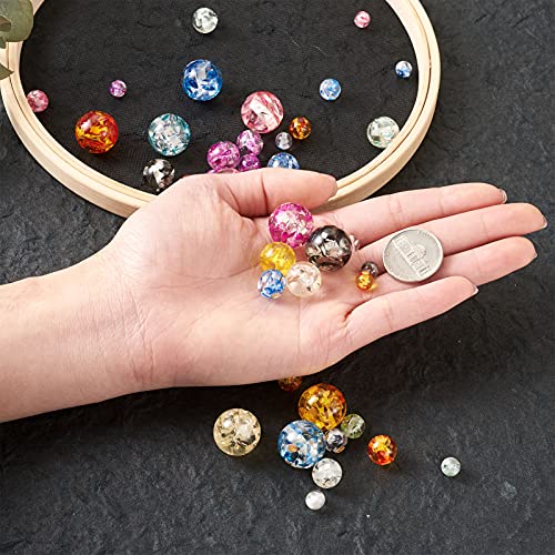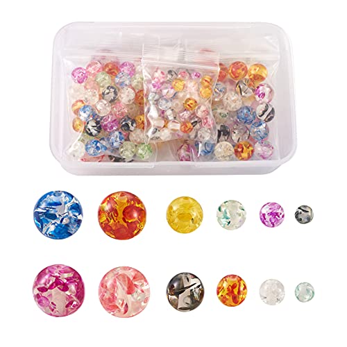 Beadthoven, 140 perline in resina imitazione ambrata di 6 dimensioni, sfere rotonde in acrilico trasparente con fiore e ambra per la creazione di gioielli Mala Yoga, collana e braccialetti