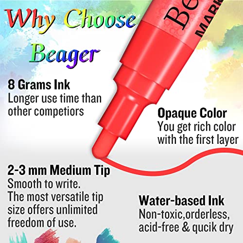 Atossici e sicuri: i pennarelli acrilici Beager per pietre sono a base d'acqua, atossici e inodore. I nostri pennarelli sono conformi a ASTM D 4236 e EN-71. Sicuri e adatti ai bambini. Inchiostro vivace di alta qualità che si asciuga rapidamente, impermeabile, garantisce una finitura opaca e lucida.