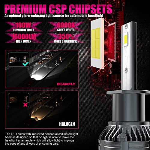 BEAMFLY Lampadine H1 LED 16000LM, Kit Fari Auto 100W Alta Potenza, 6000K Luce Bianco Forte