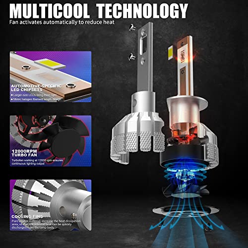 BEAMFLY Lampadine LED H1 18000LM, Kit di Conversione per Fari Alogeni Auto, Luce Abbagliante o Anabbagliante 12V, 6000K Luci Bianca Forte Fredda