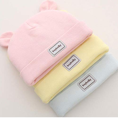 Baby Boy Beanie Ragazza Appena Nata Ospedale Bambino Hat cap Vivaio con Orecchie del Forma 100% Cotone (Giallo)