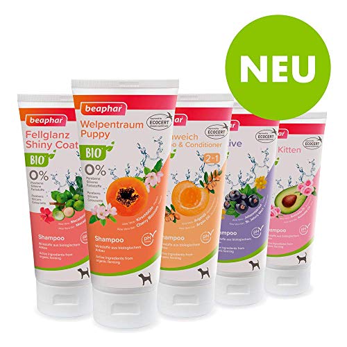 Beaphar Bio Shampoo Gatti, Ottimo per la Cute di Gatti e Gattini, con Gel di Aloe Vera da Agricoltura Biologica, Arricchito con Olio di Avocado e Rosa, Certificato ECOCERT, PH Neutro, 200 ml