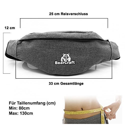 ✓ UNISEX: La borsa da cintura BearCraft è adatta a tutti ed è regolabile per circonferenze della vita di 80-130 cm