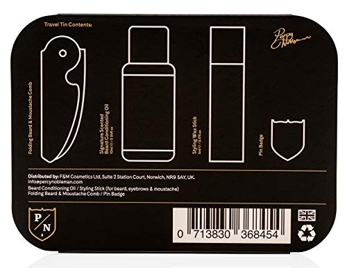 Beard Oil (10ml), Styling Stick (5ml), Folding Beard Comb & Pin Badge!