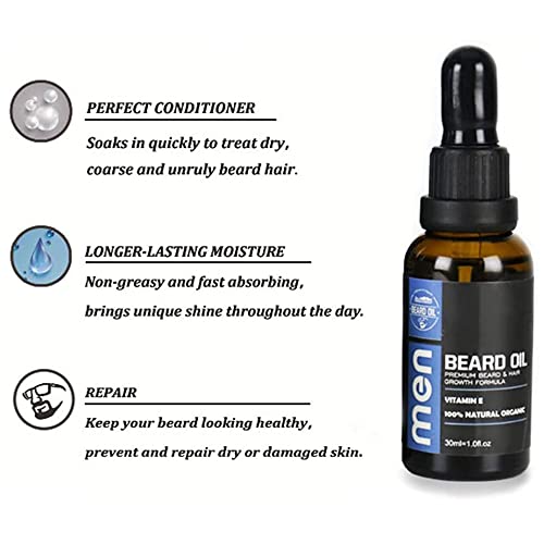 Beard Oil,Beard Growth Oil For Men Beard Growth Serum Stimulate Beard Growth Promote Hair Regrowth Facial Hair Treatment Full Longer Masculine Thick Male Beard