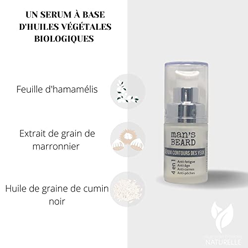 Man's beard | Serum contorno occhi | Antirughe, Anti-invecchiamento e Anti-gonfiore, rilassante e levigante con acido ialuronico | Cura per uomo e donna | Made in France | 15 ml
