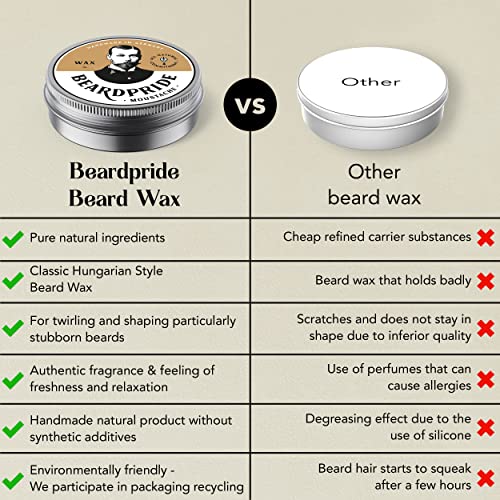 BEARDPRIDE Cera per barba uomo - Traditional - La cera per barba originale per modellare i baffi - Cera per barba a base di cera d'api - Cera per barba - Regalo per uomini - 55g
