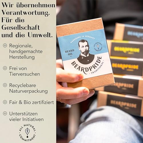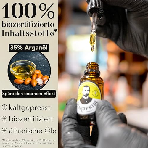 BEARDPRIDE Olio per barba uomini - Pure - L'olio per barba originale dal barbiere - Il nostro olio per barba rende la barba morbida - 100% oli naturali