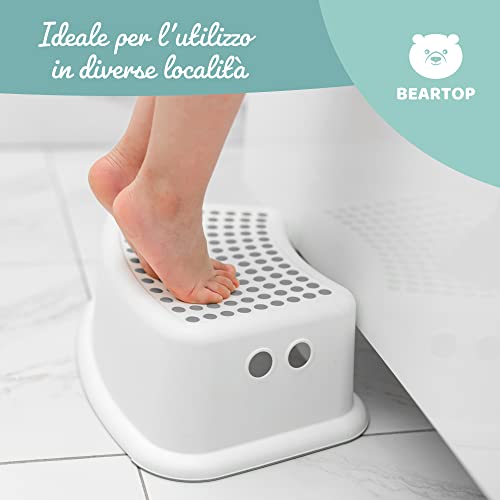 BEARTOP Sgabello per bambini | caricabile fino a 60 kg | Sgabello per bambini a 1 gradino con rivestimento antiscivolo | Sgabello per bambini di altezza 13,2 cm | Bianco | 2 pezzi