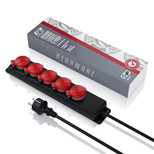 Bearware - Multipresa per esterno - Presa multipla a 5 posti Outdoor - 5 prese - con coperchio di sicurezza ribaltabile - adatta per montaggio a muro - Protezione prese integrata