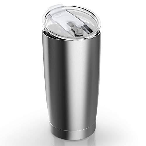 Beasea - Bicchiere da viaggio in acciaio inox, 2 pezzi, a doppia parete, isolante sottovuoto, in metallo, con coperchio, grande tazza da viaggio, per casa, ufficio, all'aperto