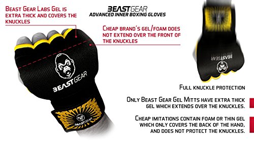 Beast Gear Guanti Boxe - Sottoguanti in Gel Elastici Antishock - Bendaggi sotto Guanti per Kick Boxing, Pugilato, MMA, Muay Thai e Arti Marziali