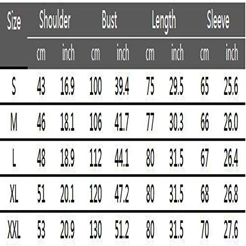 Questa è una taglia asiatica, si consiglia di scegliere una taglia che sia 1-2 più grande di essa. Prima di acquistare, utilizza abiti simili per confrontare le taglie.