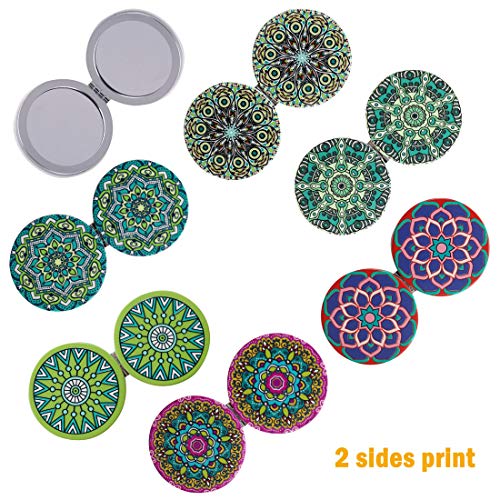 Beaufy Manifying Travel Makeup Specchio Compatto Portatile Specchio Pieghevole Piccolo Doppio di Bellezza Per Donne Ragazze Signora Uomini - Disegno Mandala Goffratura Disegni Misti - Confezione da 6