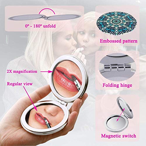Caratteristiche uniche: design mandala in rilievo, forma rotonda, leggero, compatto, pieghevole, ingrandimento, piccolo, portatile, portatile, facile da usare, double face.