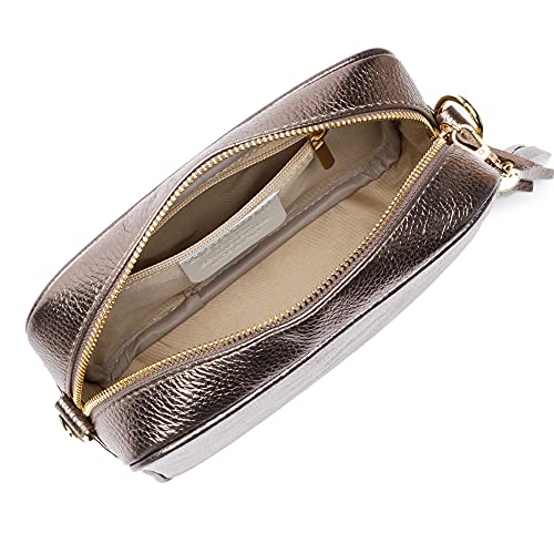 Elie Beaumont Borsa in vera pelle, color bronzo, con tracolla staccabile in pelle e tracolla aggiuntiva, 20 x 15 x 7 cm