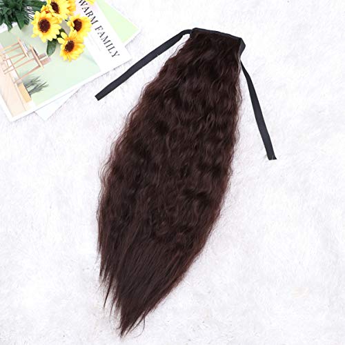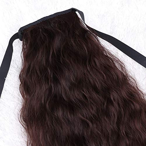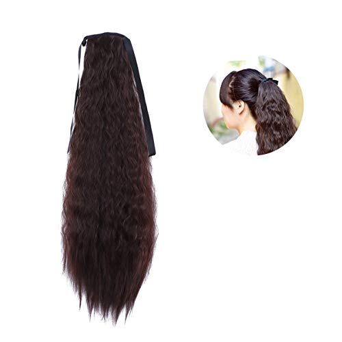 Beaupretty Long Corn Curly Hair Wig Ribbon Ponytails Drawstring Synthetic Hair Piece Wavy Ponytail Hair Extensions