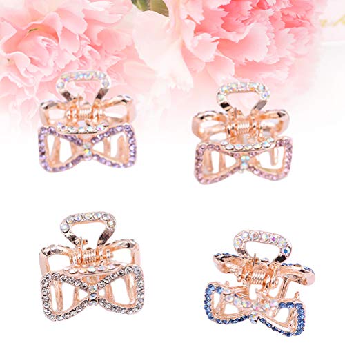 Beaupretty 4pcs Hollow bowknot primavera capelli artiglio strass lega mini capelli artiglio pinze per le ragazze lady (bianco, viola, blu, rosa per ogni 1 pz)