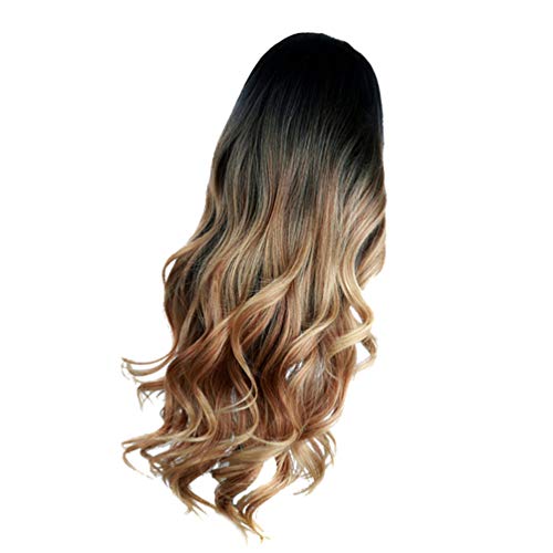 Beaupretty parrucca riccia marrone lunga moda parrucche ondulate pizzo anteriore sfumato colore per cosplay festa di halloween di natale