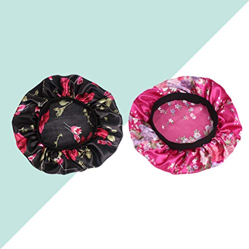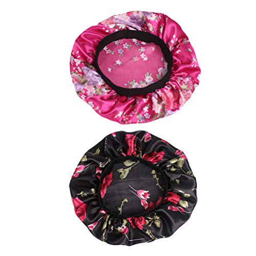 Beaupretty 2 pezzi Sleep Night Cap Satin Wide Band Bonnet Flower Pattern Notte copricapo Soft Hair Turbans per le donne Capelli Bellezza cura dei capelli Cap Chemioterapia (colorato)