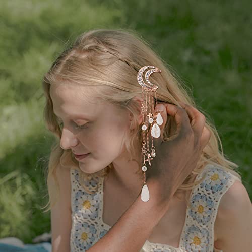 Beaupretty 2Pcs Rhinestone Tassel Hair Pins Crescent Moon Star Charm Hair Clip Bridal Moon Tassel Drop Hair Pin Crystal Chain Hairpin for Women Girls Antique Silver And Gold