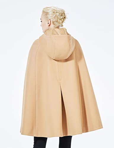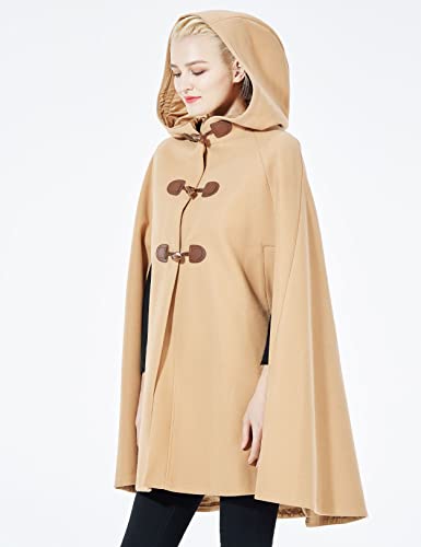 BEAUTELICATE Cappotto da Donna con Cappuccio Misto Lana Poncho Cape Mantella Giacca con Bottone Capispalla Medievali per Inverno Autunno Cosplay Robe (Khaki chiaro,Taglia Unica)