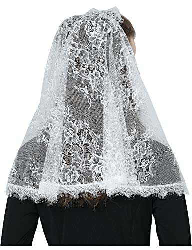 BEAUTELICATE Velo di Pizzo Chiesa Velo da Sposa Mantilla Velo Cattolica Sciarpe Scialle di Pizzo Copricapo Foulard Messa In Latino Nero Bianco V114