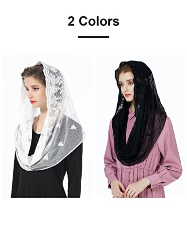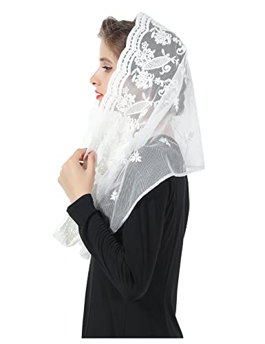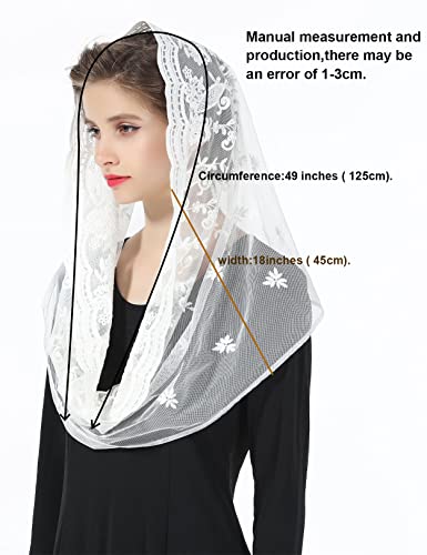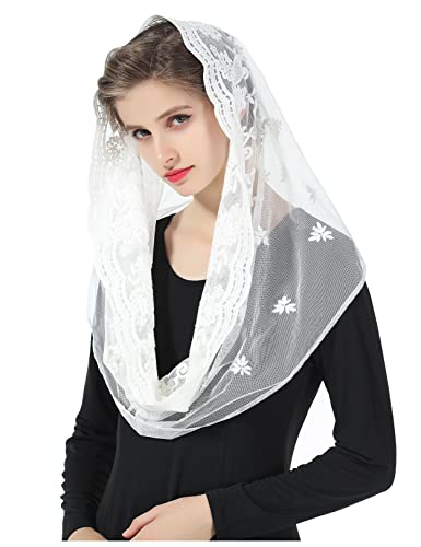 BEAUTELICATE Velo di Pizzo da Sposa Chiesa Religiosa Mantilla Infinito Sciarpa Copricapo Foulard Pizzo Cattolica per Matrimonio Messa In Latino Nero Bianco V103 (Bianco, Taglia Unica)
