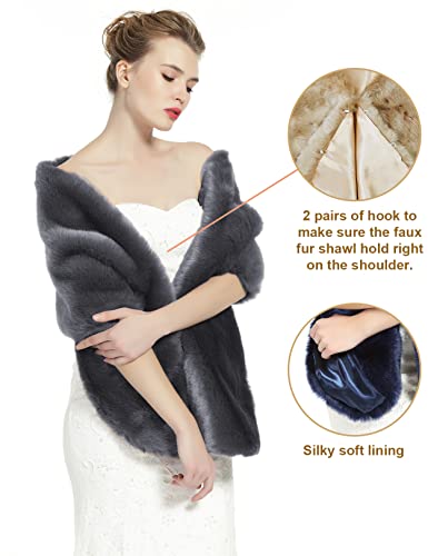 BEAUTELICATE Scialle Stola Donna Pelliccia Scialli Sciarpa Coprispalle Elegante per Matrimonio Invernale Cerimonia Sposa Damigella (Grigio Scuro, Taglia Unica)