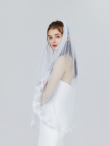 BEAUTELICATE Velo da Sposa in Pizzo Tulle a 1 Strati 104 cm di Lunghezza Bianco o Avorio Pettine di Metallo