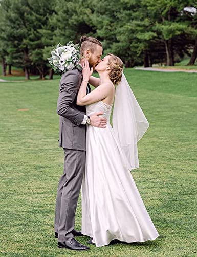 BEAUTELICATE Velo da Sposa Velo Tulle Corto 2 Strati Gomito Dito Lunghezza con Pettine di Metallo per Nozze Bianco Avorio