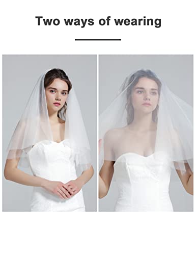 BEAUTELICATE Velo da Sposa Velo Tulle Corto 2 Strati Gomito Dito Lunghezza con Pettine di Metallo per Nozze Bianco Avorio V26 (Avorio - Lunghezza Del Gomito: 60cm*70cm)