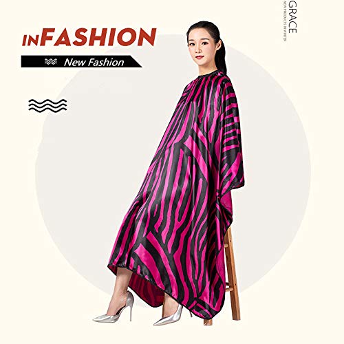 Beautifulove Colorfulife - Mantella professionale per acconciature, da parrucchiere, impermeabile, con strisce zebrate, in tessuto wai, 139,7 x 160 cm (rosso rosa)