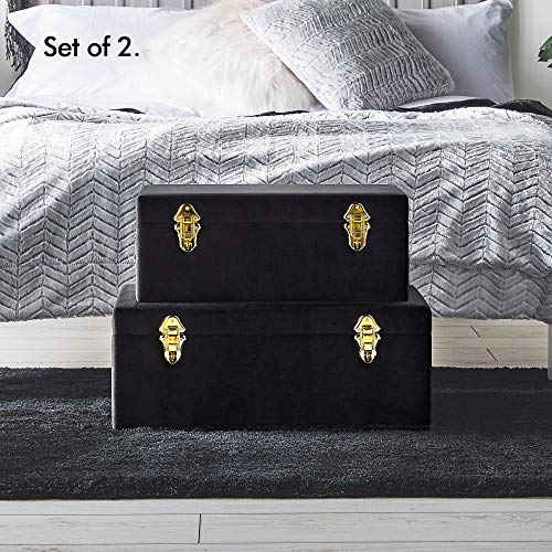 Beautify Set di 2 Bauli in Velluto Nero Custodie Bauli Scatole Per Camera da Letto, Soggiorno, Spogliatoio, Corridoio Per Conservare e Archiviare
