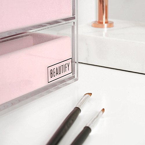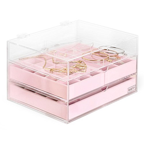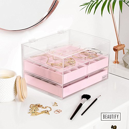Beautify Organizer gioielli in acrilico con 8 cassetti e divisori in camoscio - Trasparente - Rosa