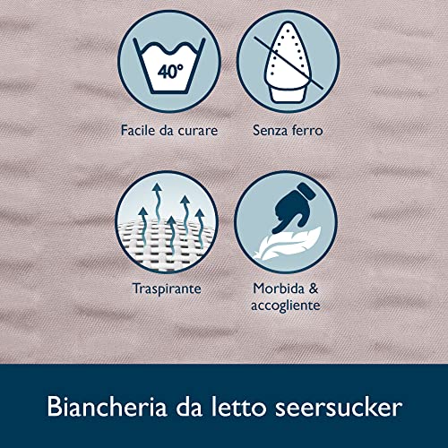 Beautissu Set di 2 Biancheria da letto Seersucker 155x220 cm Meline - Copripiumino con cerniera per l'estate - Federa e copripiumino traspirante e delicato sulla pelle - talpa