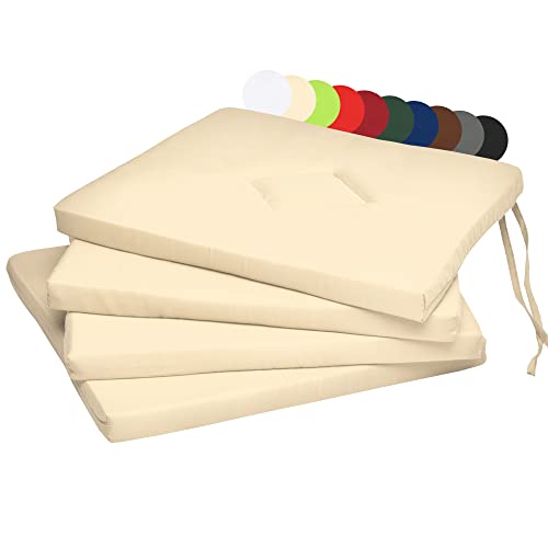 Beautissu Set da 4 Cuscini Decorativi Sedia Kim 40x40x3cm con Lacci - Soffici e Comodi - per casa o Giardino - ecrú
