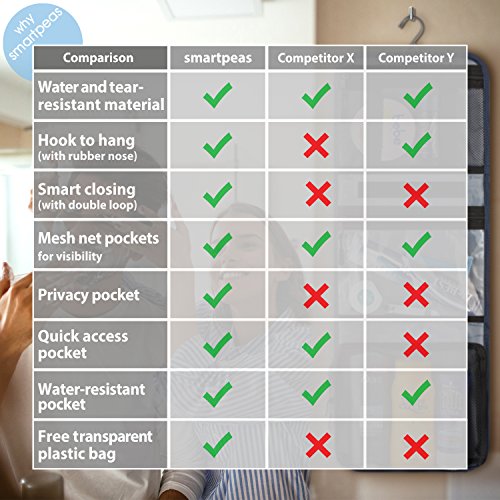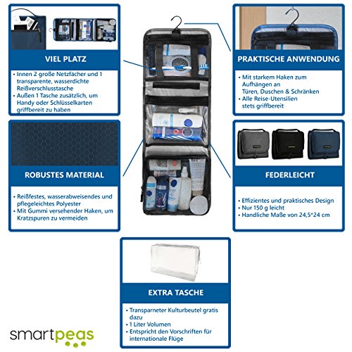 Beauty Case da appendere grigio - 3 scomparti - robusto e facile da chiudere - ideale per viaggiare - inclusa pochette trasparente per bagaglio a mano Gratis - by SMARTPEAS