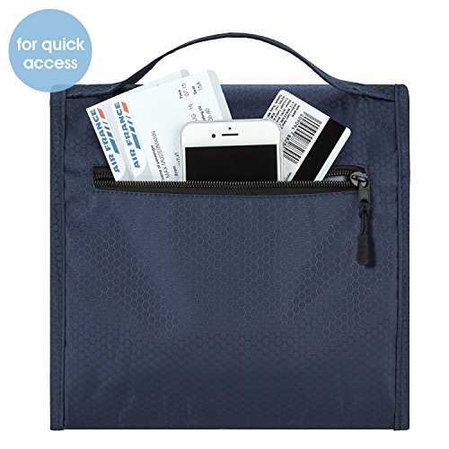 Beauty Case da appendere Blue Navy - 3 scomparti - robusto e facile da chiudere - ideale per viaggiare - inclusa pochette trasparente per bagaglio a mano Gratis - by SMARTPEAS