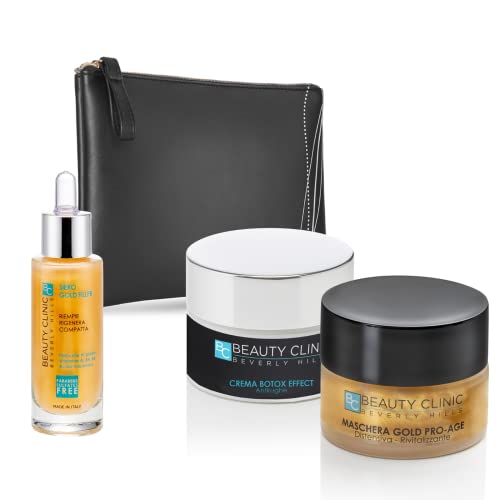 Beauty Clinic, Infinite Gold Set Trattamento Viso a Base di Acido Ialuronico, Kit con Crema Viso Antirughe Botox Effect 50 ml, Siero Gold Filler 30 ml, Maschera Gold Pro-Age 50 ml, Pochette in Omaggio