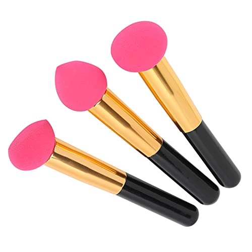 3pcs Beauty Cosmetics Puff Brush, Morbida Spugna Elastica Pennelli per Trucco Cosmetici Puff Pinse Foundation Spugne per Trucco Puff Make Up Mixer con Manico(3 pezzi rosa)