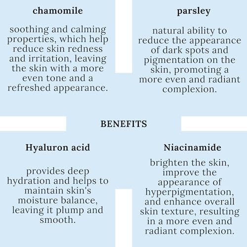 ✅ Ingredienti attivi unici: il nostro componente naturale CYwhite dell'alga arcobaleno esotica, alfa-arbutina ed estratti di prezzemolo, uva ursina, radice di liquirizia, origano e camomilla offrono vantaggi unici.