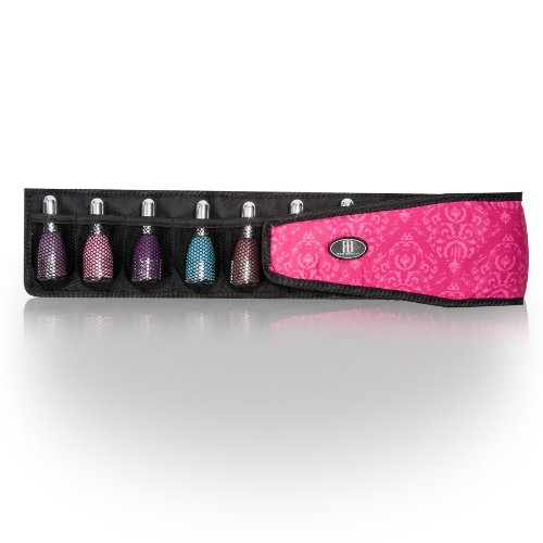 La striscia in tessuto porta smalti coordinata è dotata di tasche per contenere e proteggere fino a 12 smalti di ogni forma e misura.