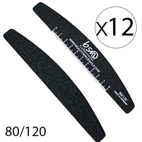 Beauty Space nails - X12 Lima Mezzaluna Black 80/120 con righello - Confezione da 12 Lime professionali per ricostruzione unghie, smontaggio gel, acrilico e acrigel - Lime sterilizzabili e lavabili