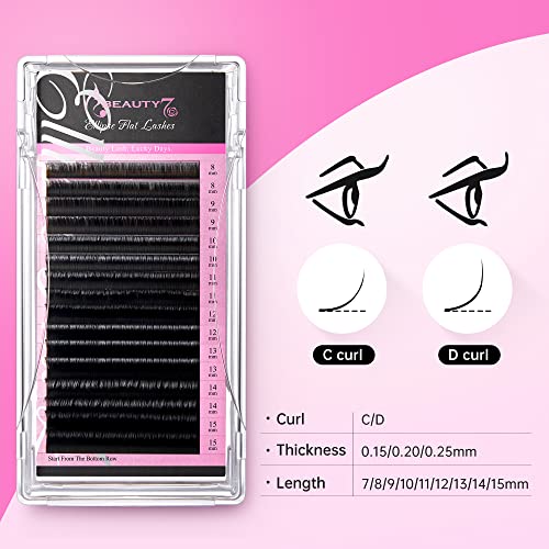 Beauty7 - Ciglia singole piatte, ciglia allungate curve, spessore 0,15/0,20, con mix di lunghezze: 7-14 mm