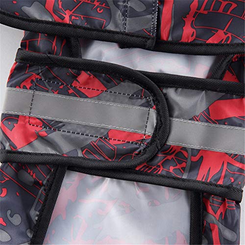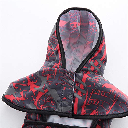 Beautyhe Impermeabile Cane con Cappuccio Impermeabile per Cani con Strisce Riflettenti Taglia Regolabile Cappottini per Cani Portatile per A Caccia Escursionismo Black&Red,Medium