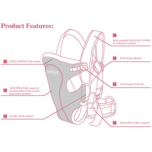✔ mani libere e comfort per il bebè - il poggiatesta pieghevole e imbottito protegge la testa del bambino correttamente. la larghezza degli spallacci è di circa 6 cm e può aiutarti a distribuire meglio il peso.